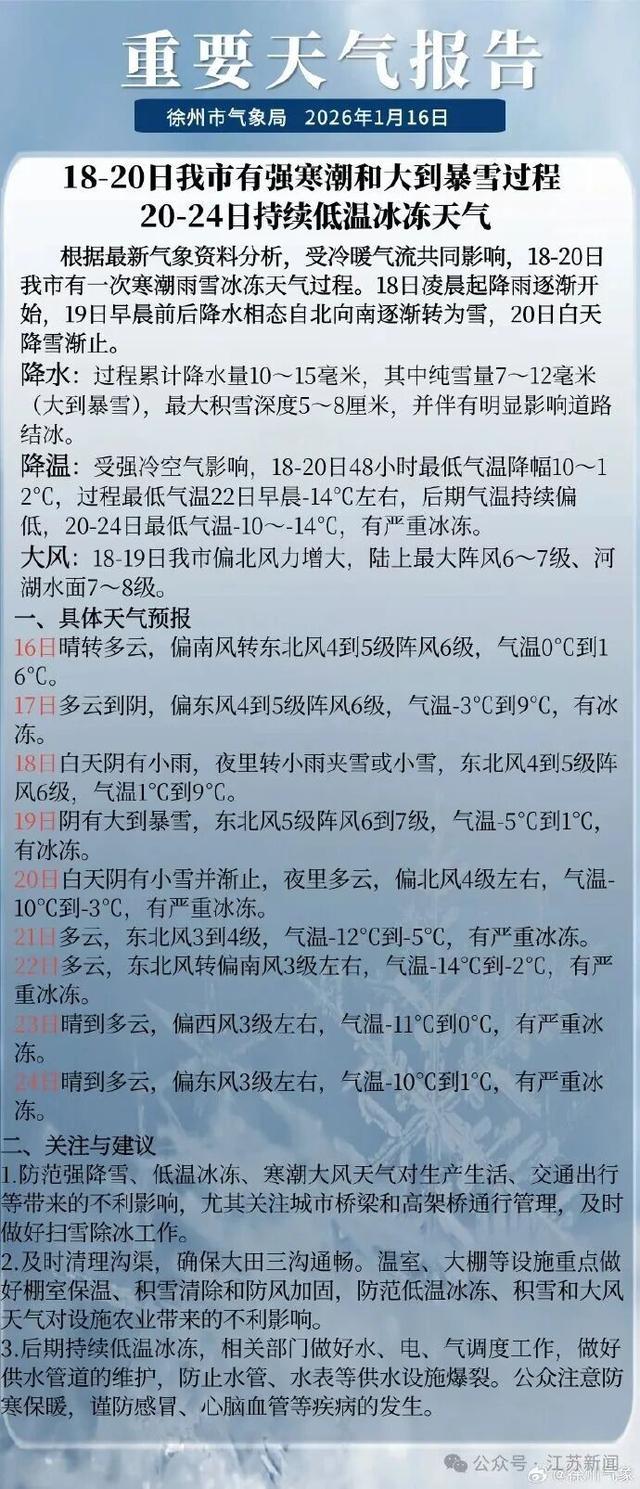 据南京气象:19日-23日将出现雨雪冰冻天气,比元旦期间降雪量更大、积雪更深!19日夜里中北部可达小雪到大雪!